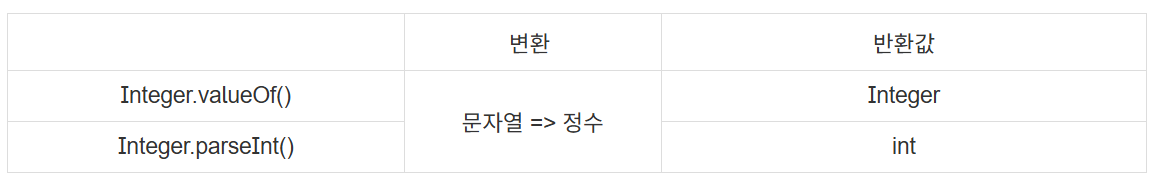 Integer.valueOf()의 경우 문자열을 정수형으로 바꿔준다.